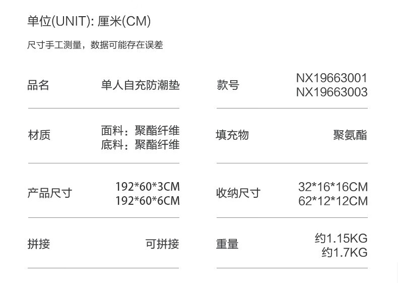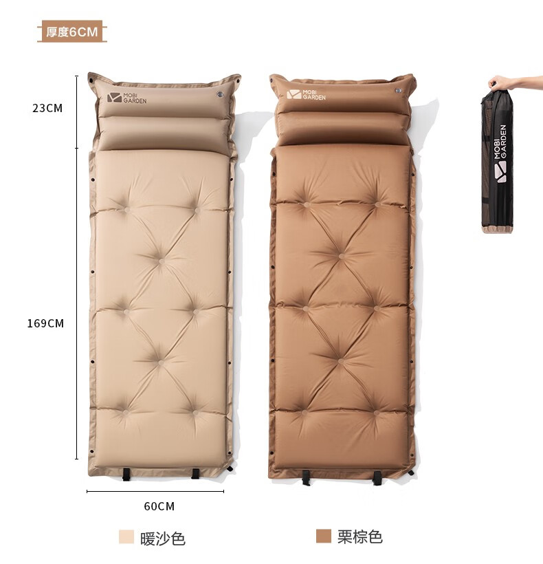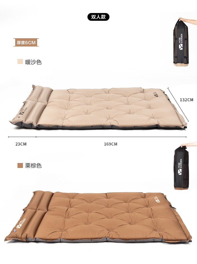 一个三人一个双人三人是买的3厘米,感觉有点薄,这次又入手一个双人6厘米收纳起来稍微有点大,没有充气床垫,那种方便睡上去还是感觉挺不错的