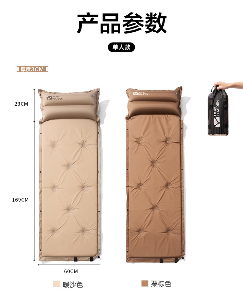 牧高笛(MOBIGARDEN)充气垫户外露营防潮垫双人可拼接加厚自动充气垫子午休垫水瓶 三人3cm暖沙色