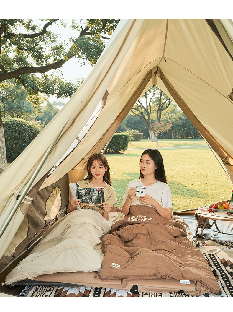 牧高笛(MOBIGARDEN)祥云睡袋 户外徒步露营成人保暖可拼接单人隔脏信封式加厚睡袋 浅沙色(左)-1.4KG