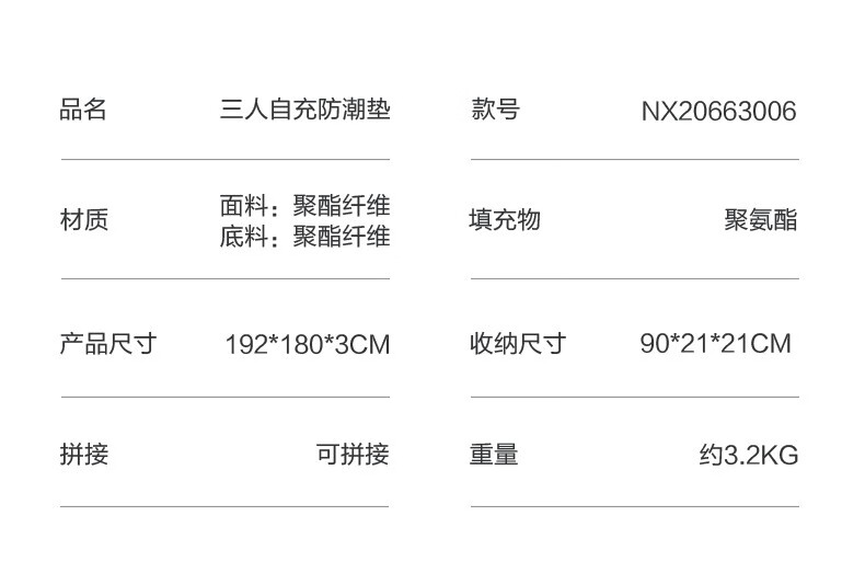 我买的是3人的,是自充气的效果非常好赶上双十二下的单牧高笛有保障,值得推荐非常好用的床垫,