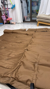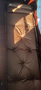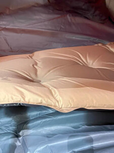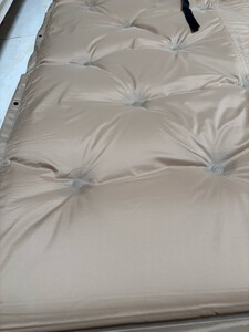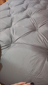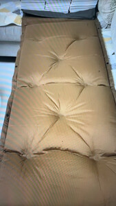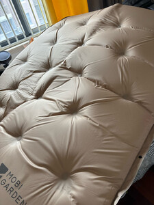 这次垫子有点一波三折,首先冲着牌子买的,毕竟之前买的其他产品质量都很好,拿到手后发现卷在里边的那一层褶皱严重,客服说是卷里边的原因,展开晾晒一下即可。晾了一周如图,比刚拿到手稍微好点,还是有褶皱,影响视觉效果,躺上去感觉不得劲,决定留下是因为大件不好退,其次一周了,垫子没跑气,凑合用吧,还能咋滴