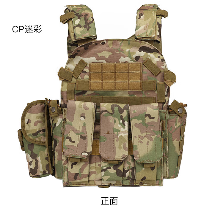 糜岚战术弹挂甲户外背心马 组合迷真人吃鸡野外探险防护装备 CP迷彩 均码可调节+红旗贴