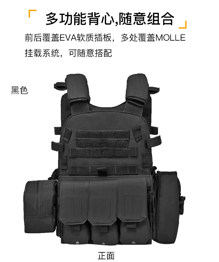 欧士顿JPC轻量化多功能战术马甲背心防刺插板防弹衣儿童CS户外胸挂成人 黑色JPC