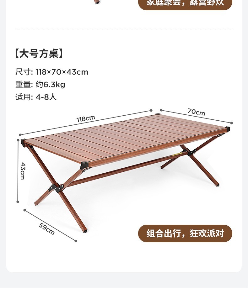 山扉山扉双面蛋卷桌子铝合金超轻户外桌椅折叠露营便携野餐装备全套 120大号4-6人【双层双面】白橡木