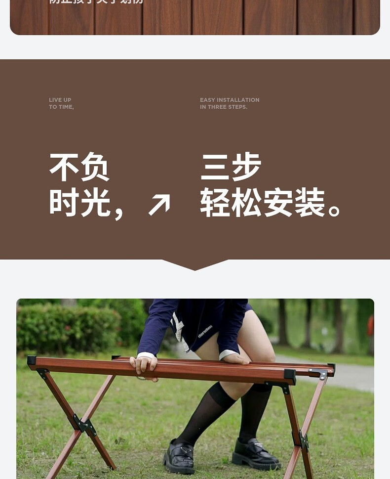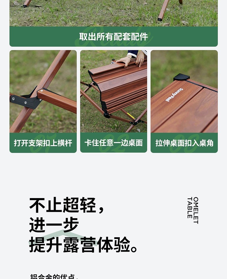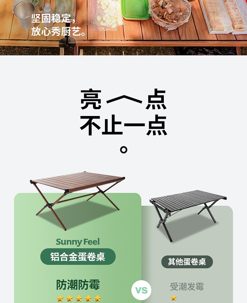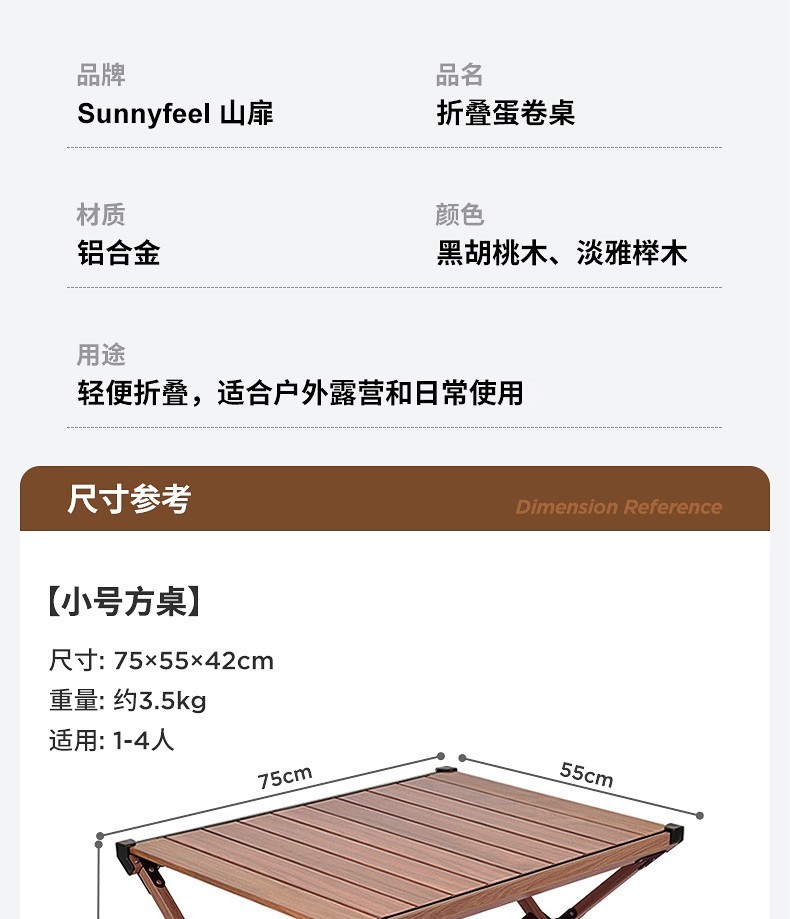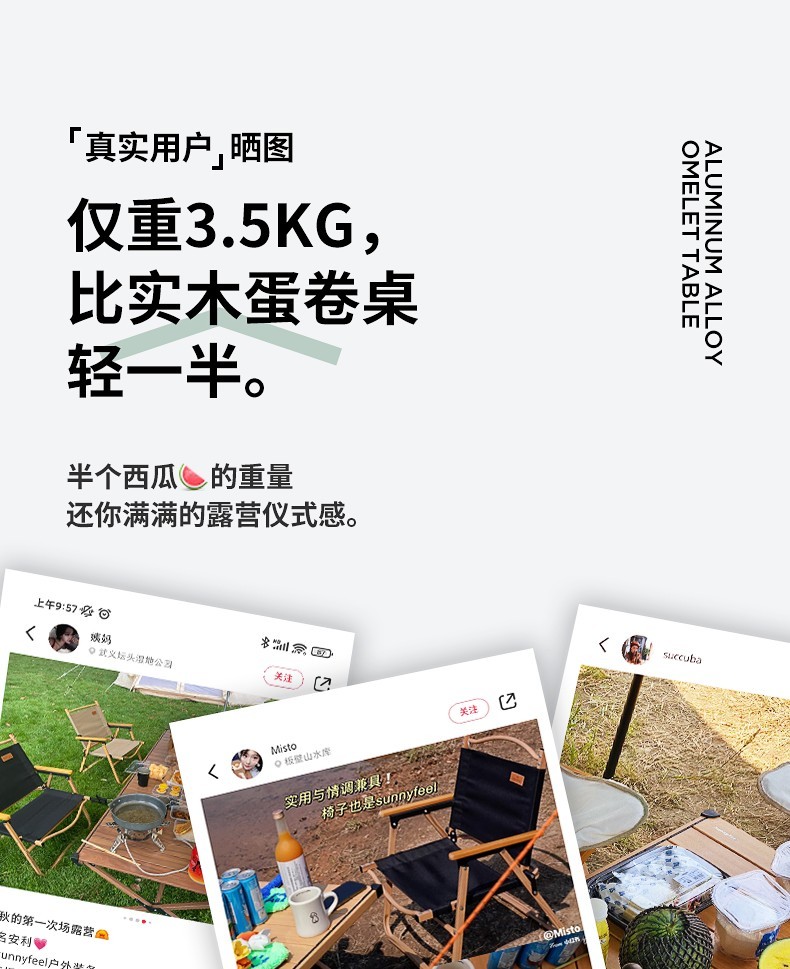 山扉这款蛋卷桌颜值真的非常好看。组装方便容易收纳,重量比较轻,单手托举没问题。桌面结实耐用。非常好用。除了露营野餐,还有很多地方可以用的到,没选错哦哈哈