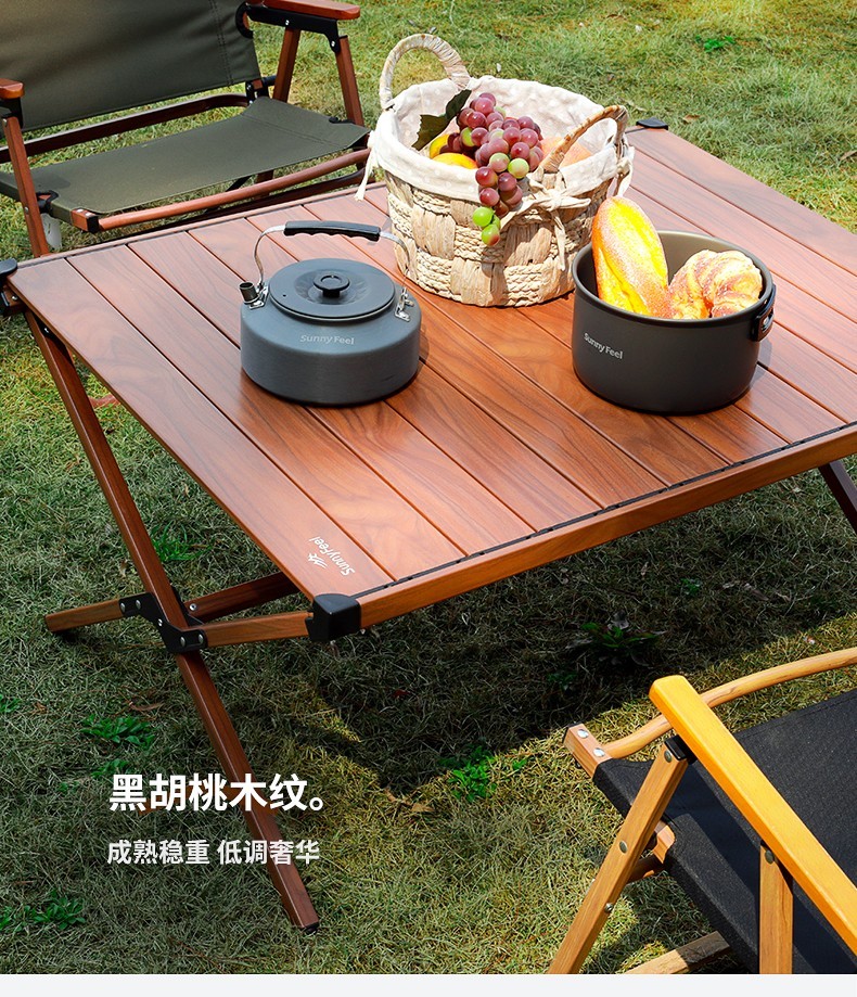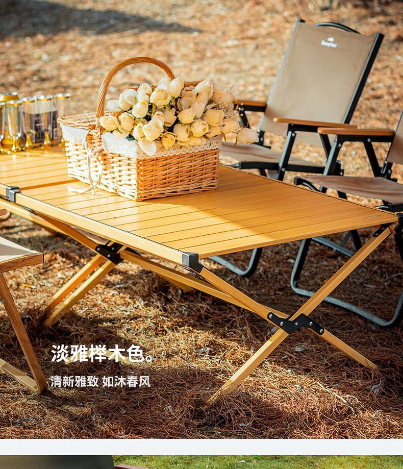 山扉山扉双面户外蛋卷桌便携野餐装备铝合金折叠野餐桌超轻露营桌 120双面白橡木纹