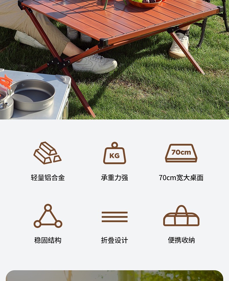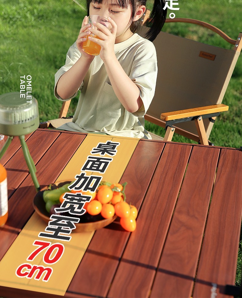 山扉山姆同款蛋卷桌滑轨蛋卷桌铝合金户外露营桌便携野餐野营桌 滑轨蛋卷桌 卡其色