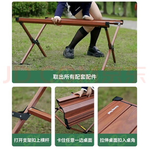 Guide Series户外铝合金折叠桌露营桌便携升降沙滩烧烤桌加宽桌自驾游车载桌 新 加宽金属 木纹黑色