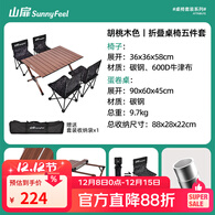 山扉林集桌椅套装户外桌椅装备套装便携式折叠蛋卷桌 胡桃木色五件套【蛋卷桌+四椅】