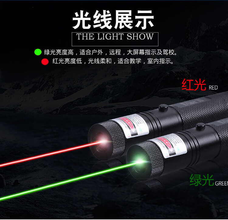 雷佰(Leibai)L303激光笔手电绿光红外线镭射灯强光远射可充电户外教练售楼指星 标配:黑色红光【一电一充】
