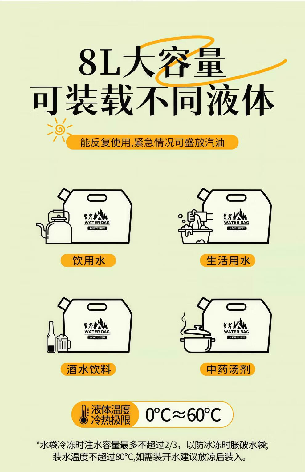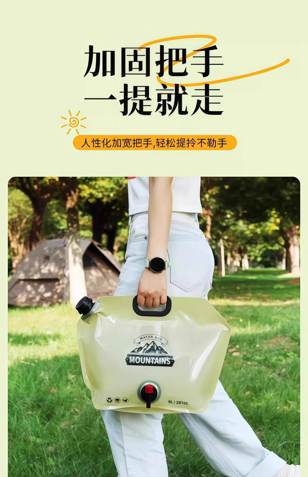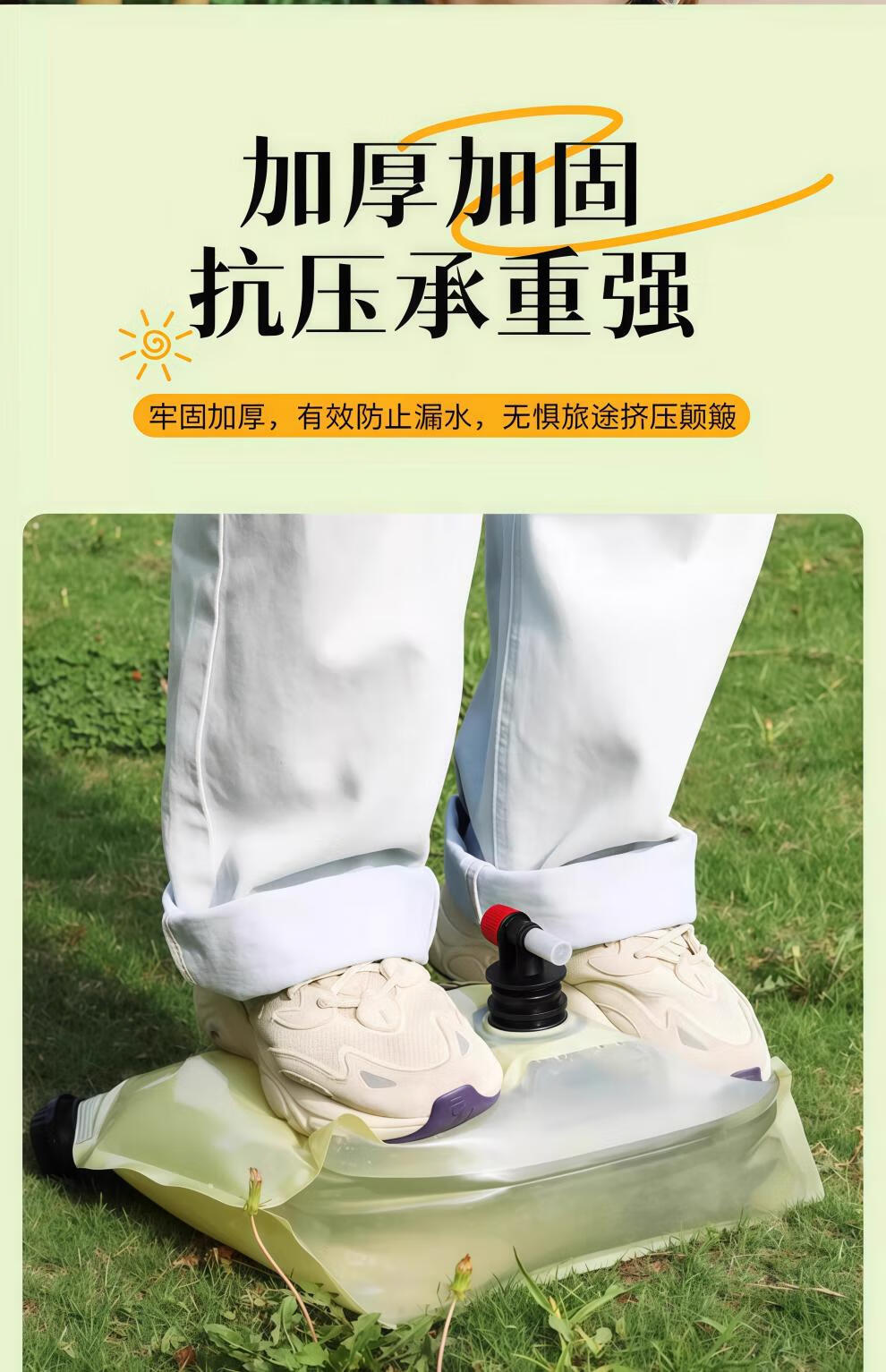 户外便携式折叠水袋大容量加厚食品级露营储水袋音乐节装水塑料袋 卡其色[2个装]8L大容量