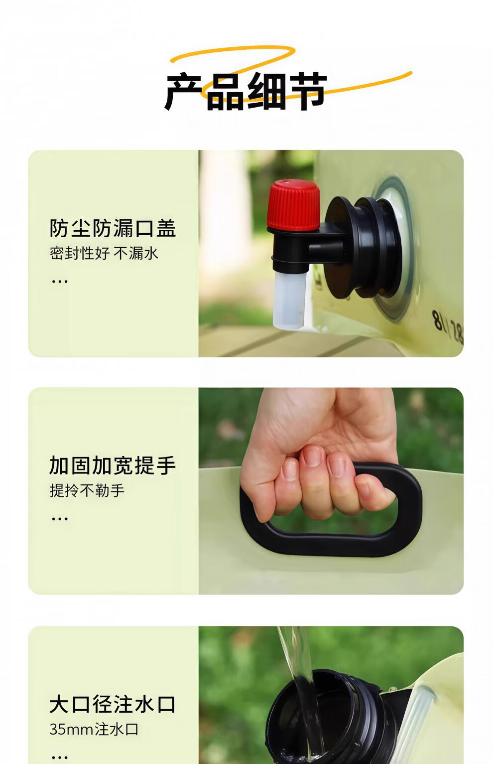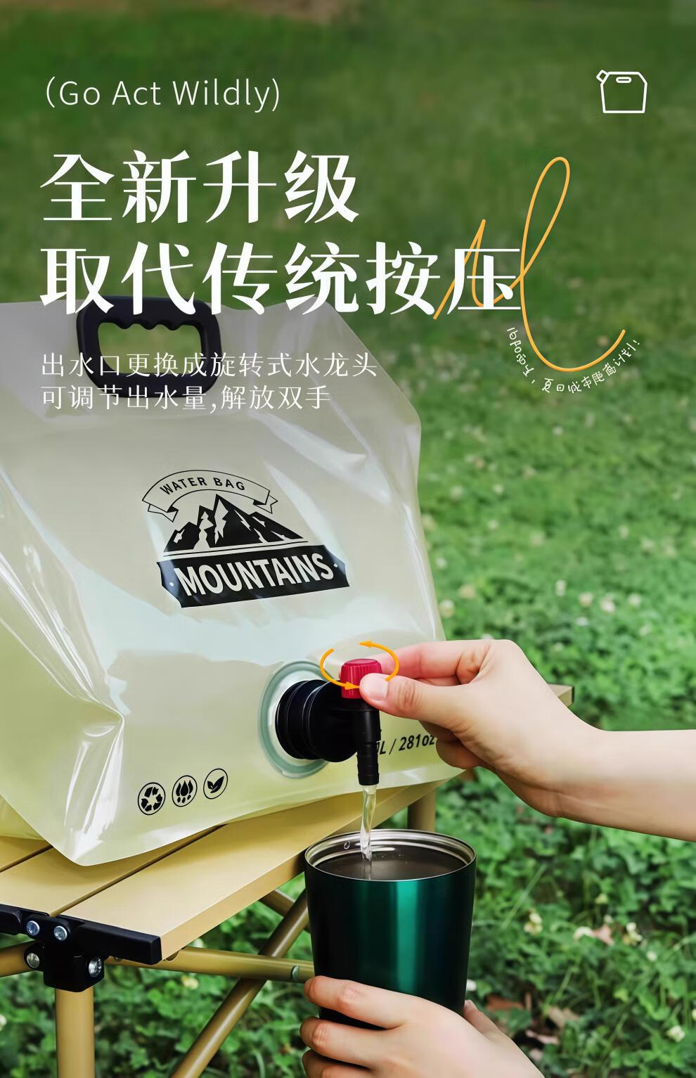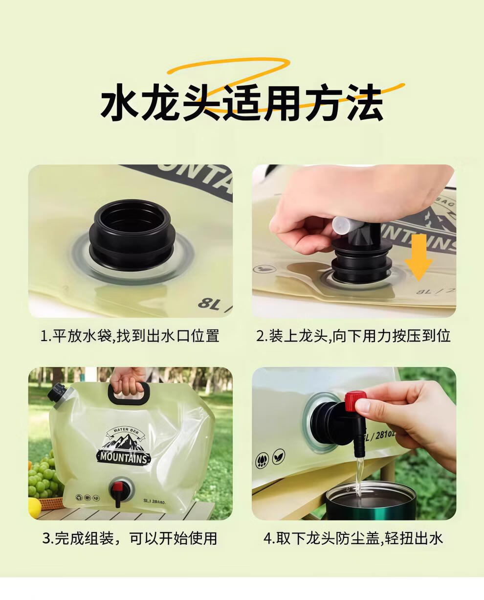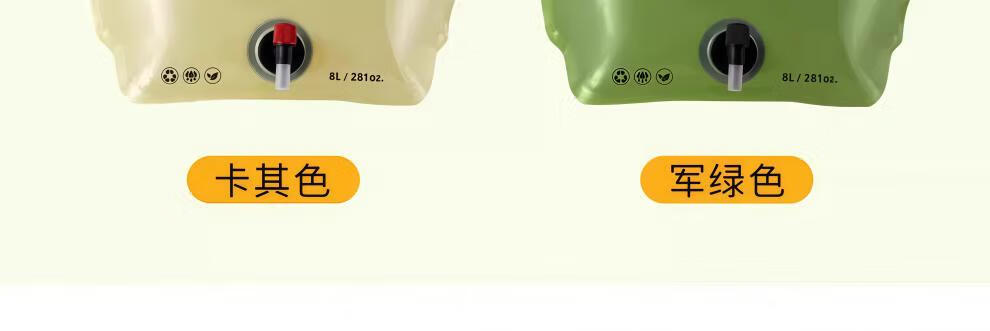 户外便携式折叠水袋大容量加厚食品级露营储水袋音乐节装水塑料袋 卡其色[2个装]8L大容量