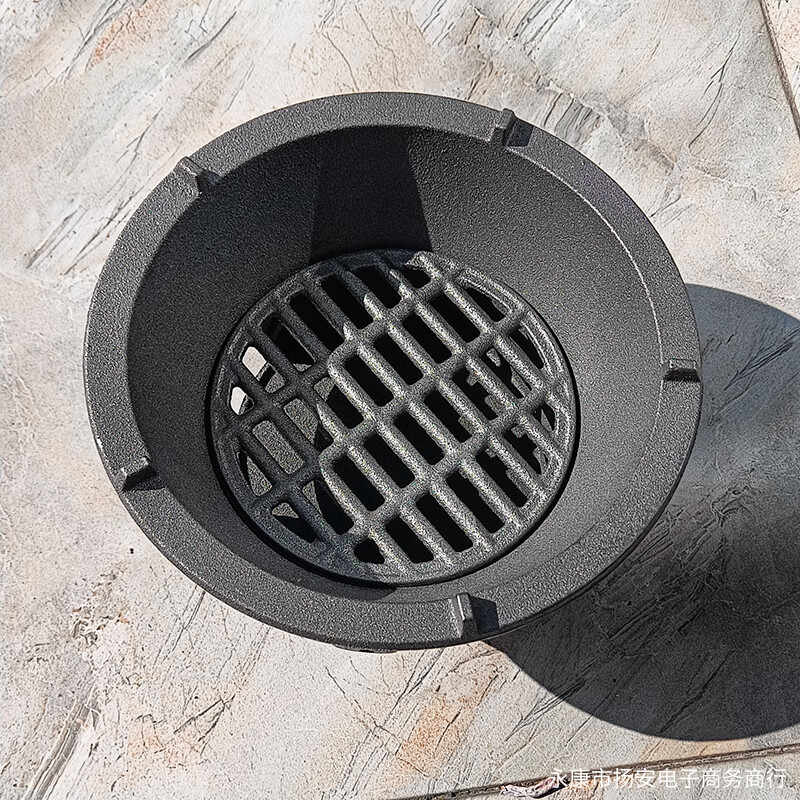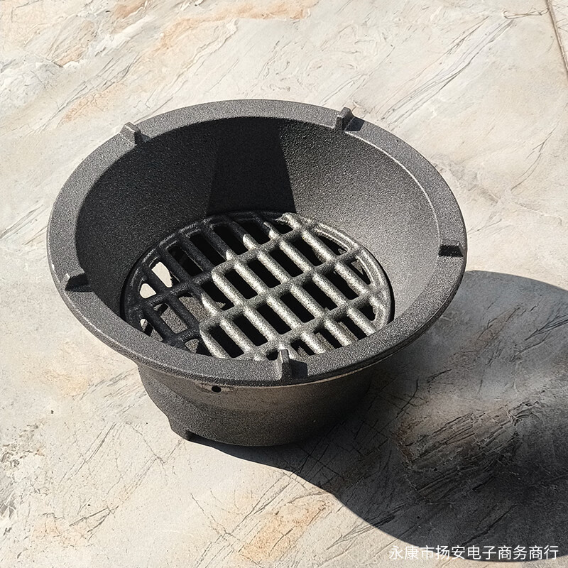 铸铁炭炉生铁碳烤炉铸铁炭烧烤炉加厚铁炉子炭火炉烧炭烤火炉火锅炉子烧炭烤火炉 小号铸铁碳炉无木板 迷你款