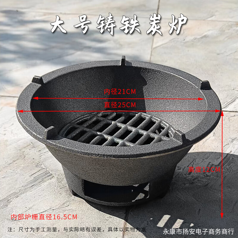 铸铁炭炉室内取暖老式炉子火炉生铁户外木炭柴火灶围炉煮茶烧碳 加高款25CM炭炉+不锈钢烤网