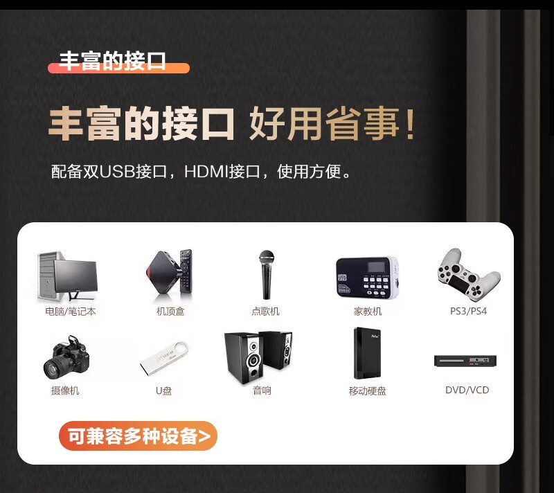 京东京造投影仪家用国家补贴放映一体机音响高清带云台支架高清投屏办公家庭影院室内外投屏器放映机I22