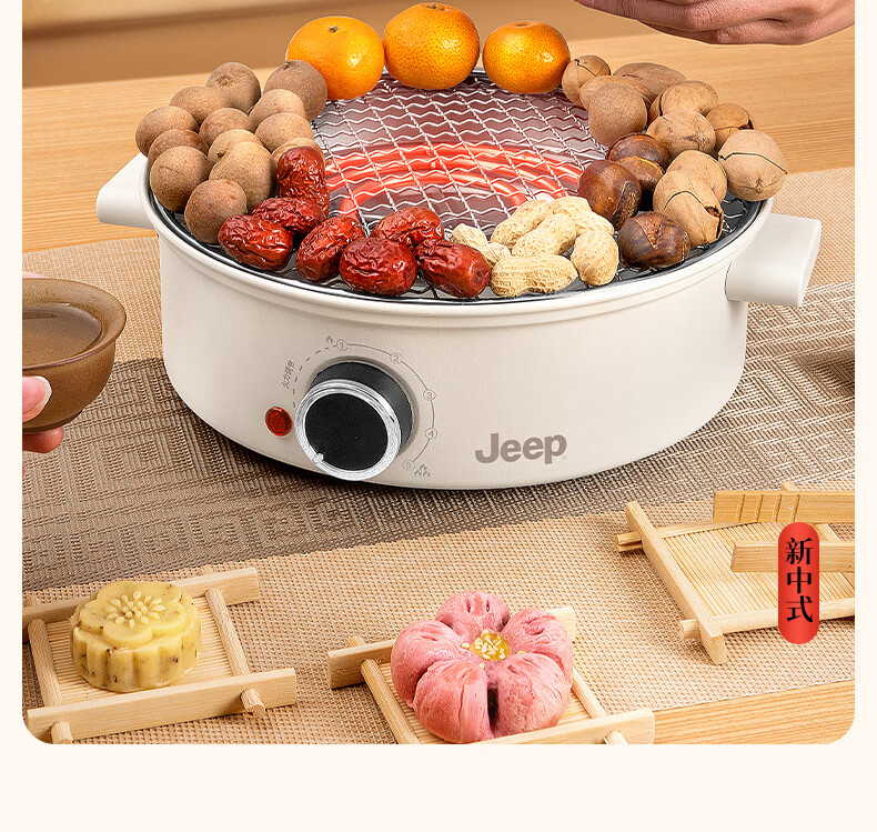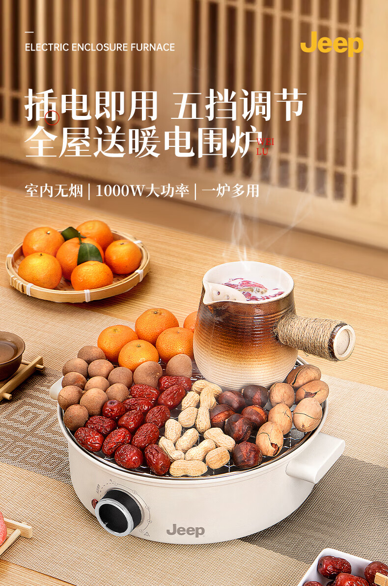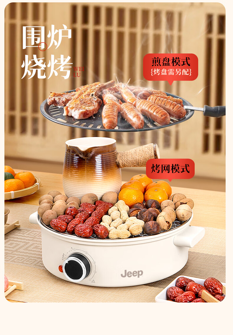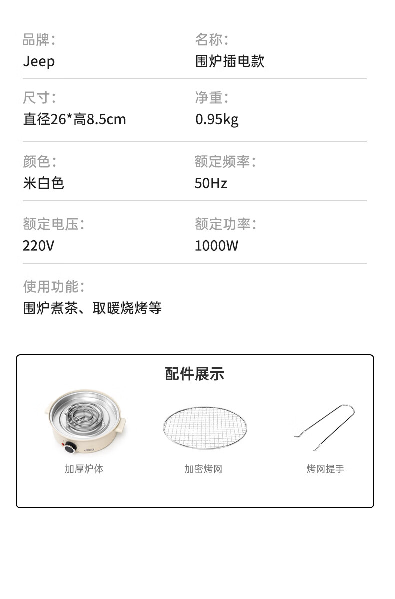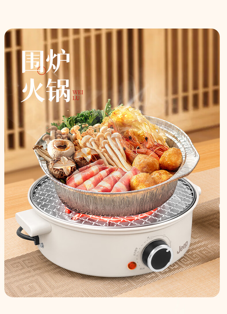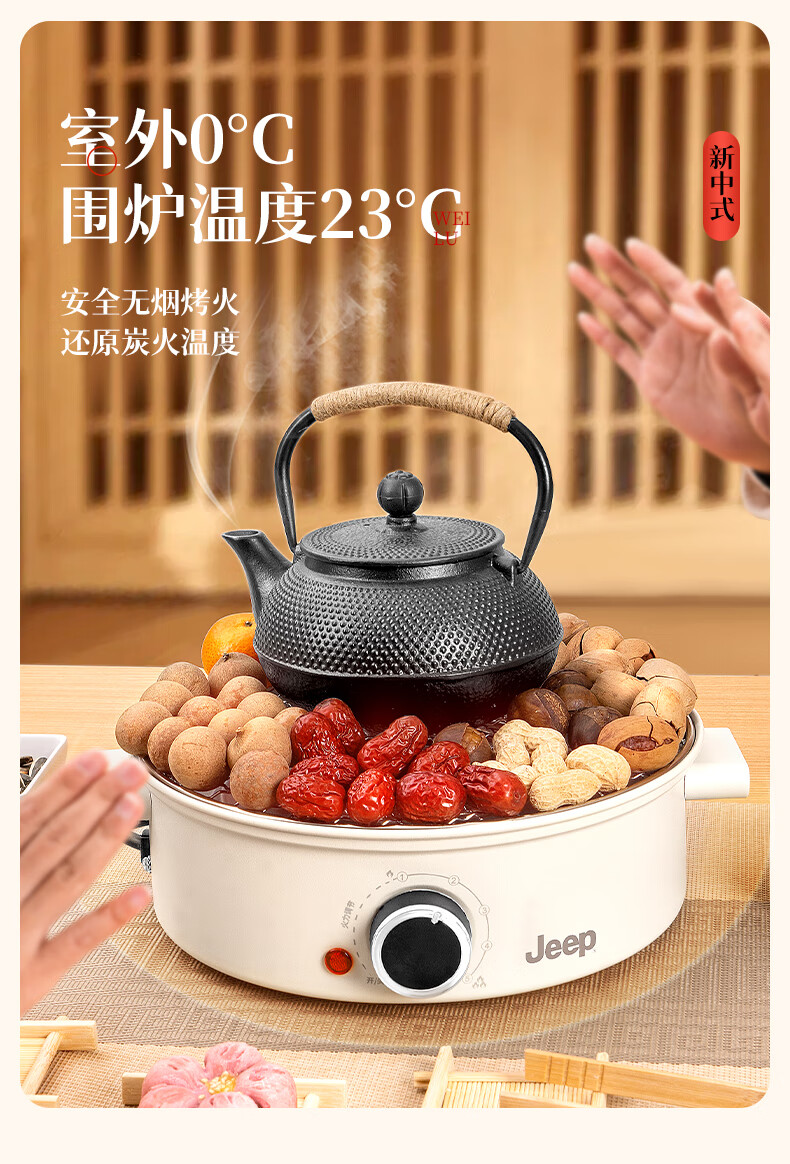 JEEP围炉煮茶电围炉户外露营庭院烤火盆取暖炉家用室内烧烤炉煮茶套装 【一炉多用/五档调节】围炉插电款