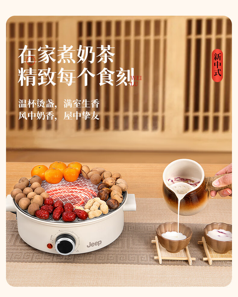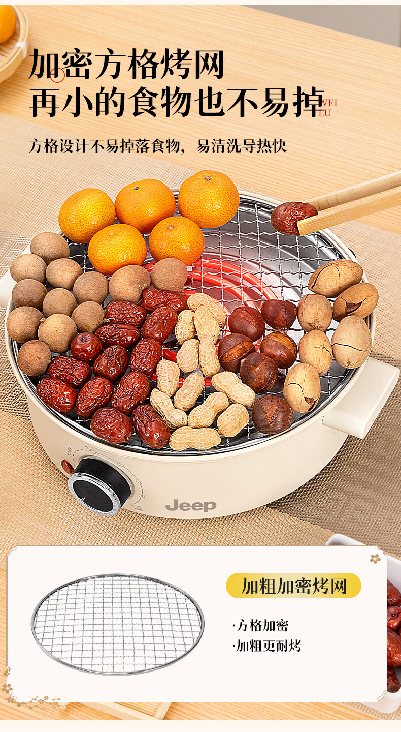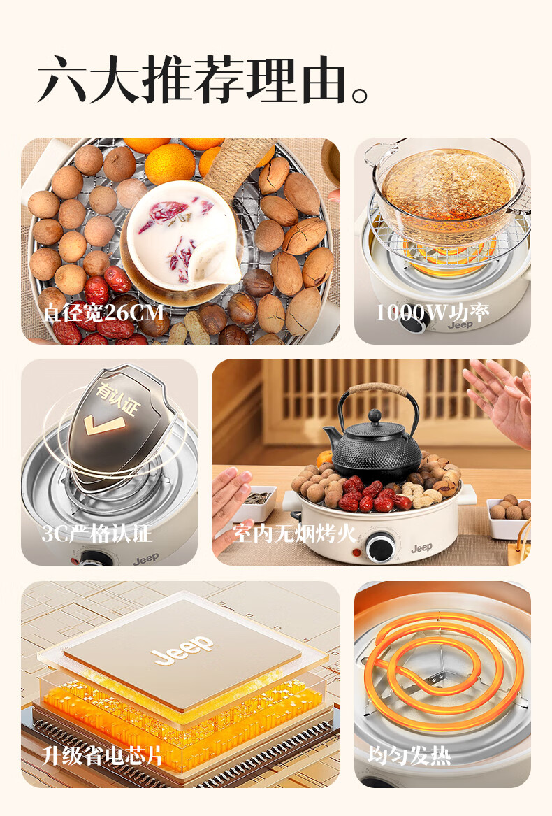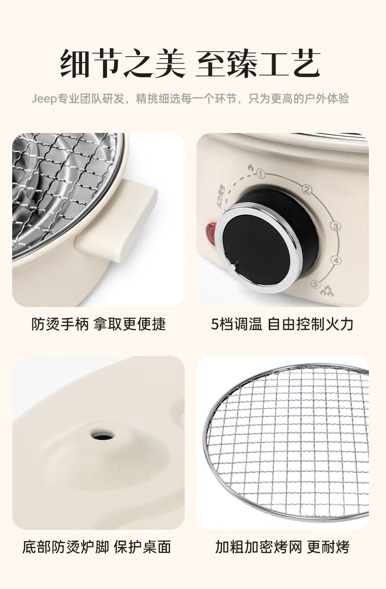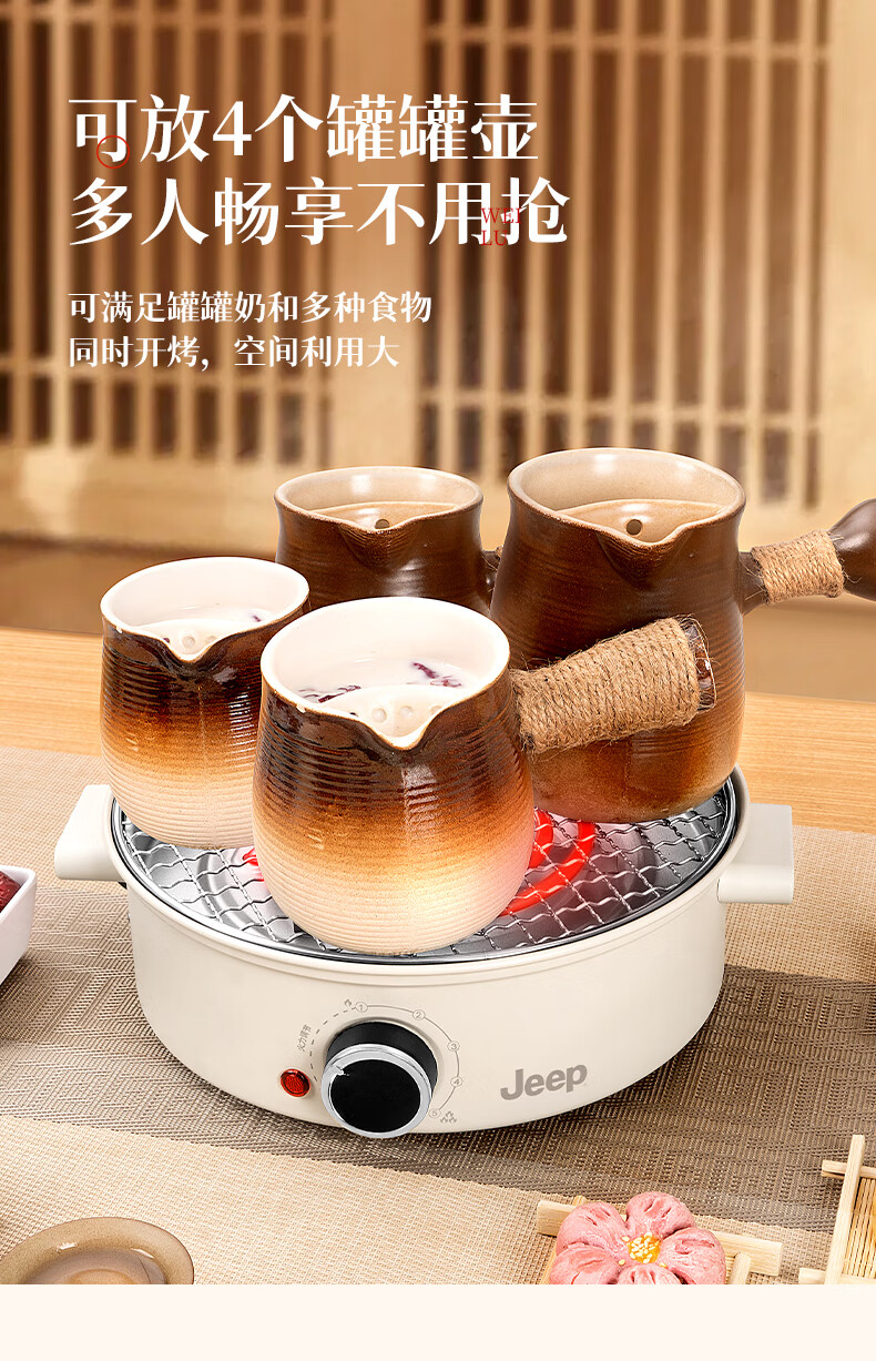 JEEP围炉煮茶电围炉户外露营庭院烤火盆取暖炉家用室内烧烤炉煮茶套装 【一炉多用/五档调节】围炉插电款