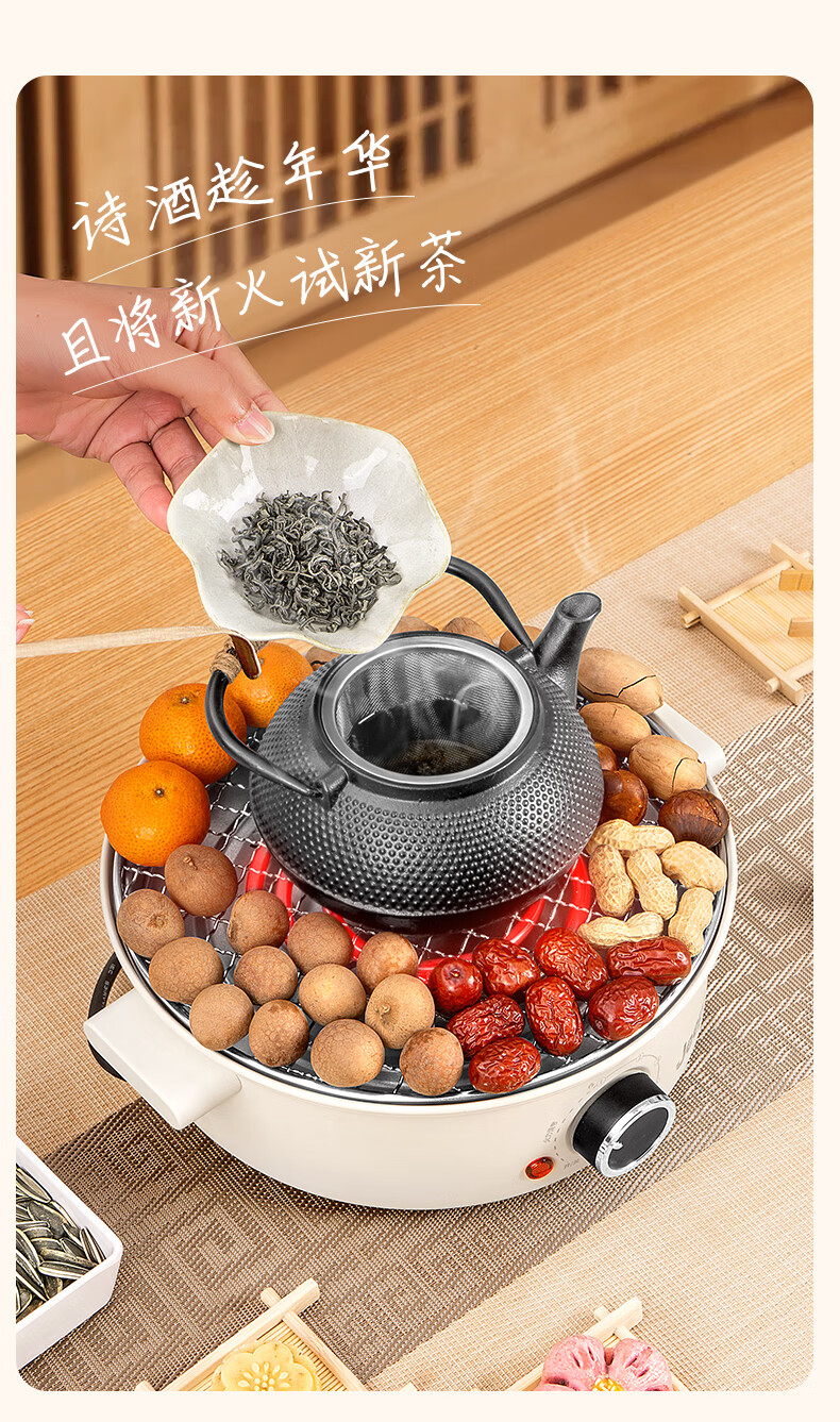 探险者(TAN XIAN ZHE)新品围炉煮茶电炉烤火炉套装器具全套新年礼盒2024新款家用 【煎烤两用】+带水圈烤盘