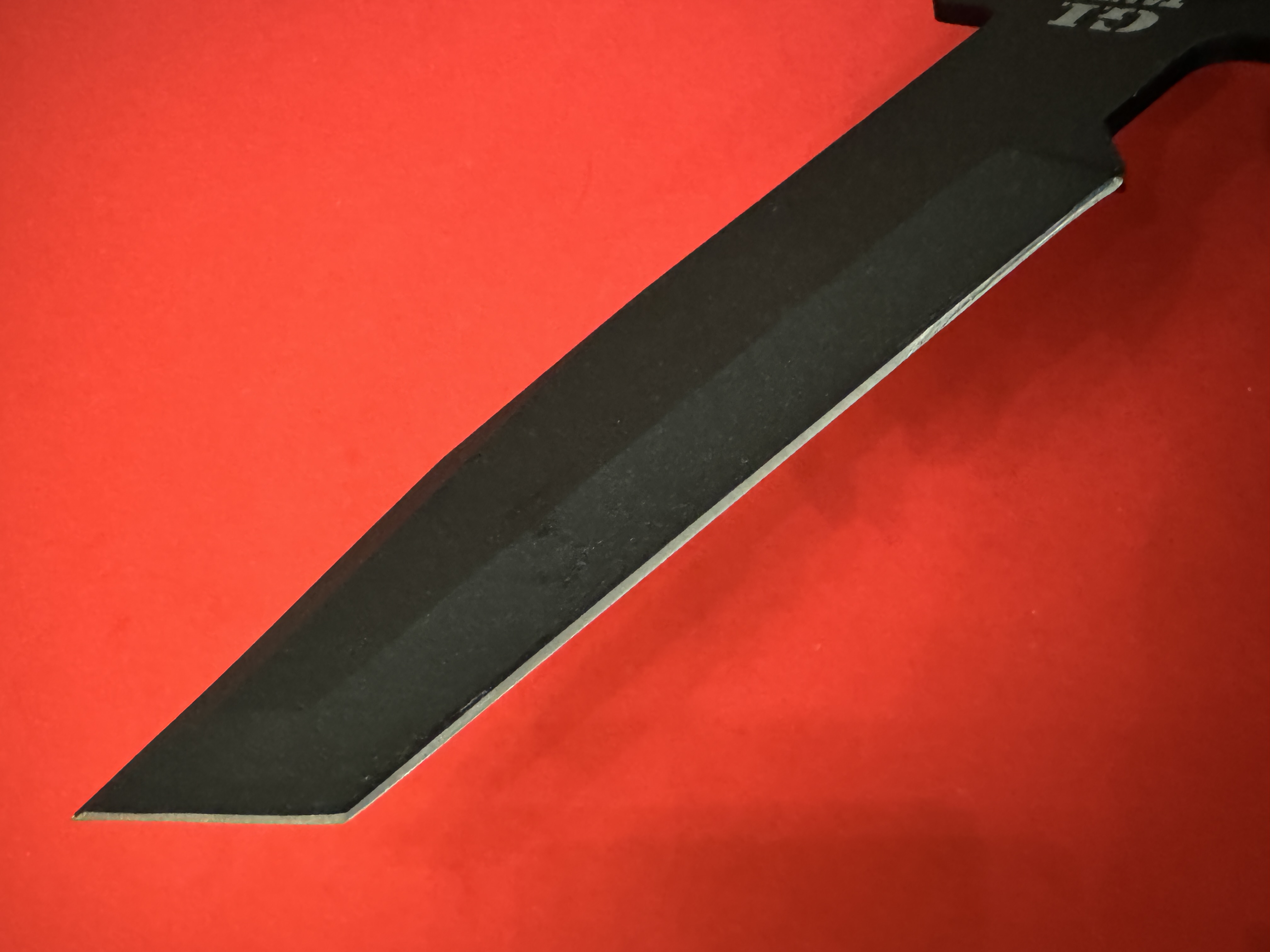 钢材:1055高碳钢 柄材:polypropylene 全长:30.48厘米 刀身厚度:4毫米 刀具重量:300.5克