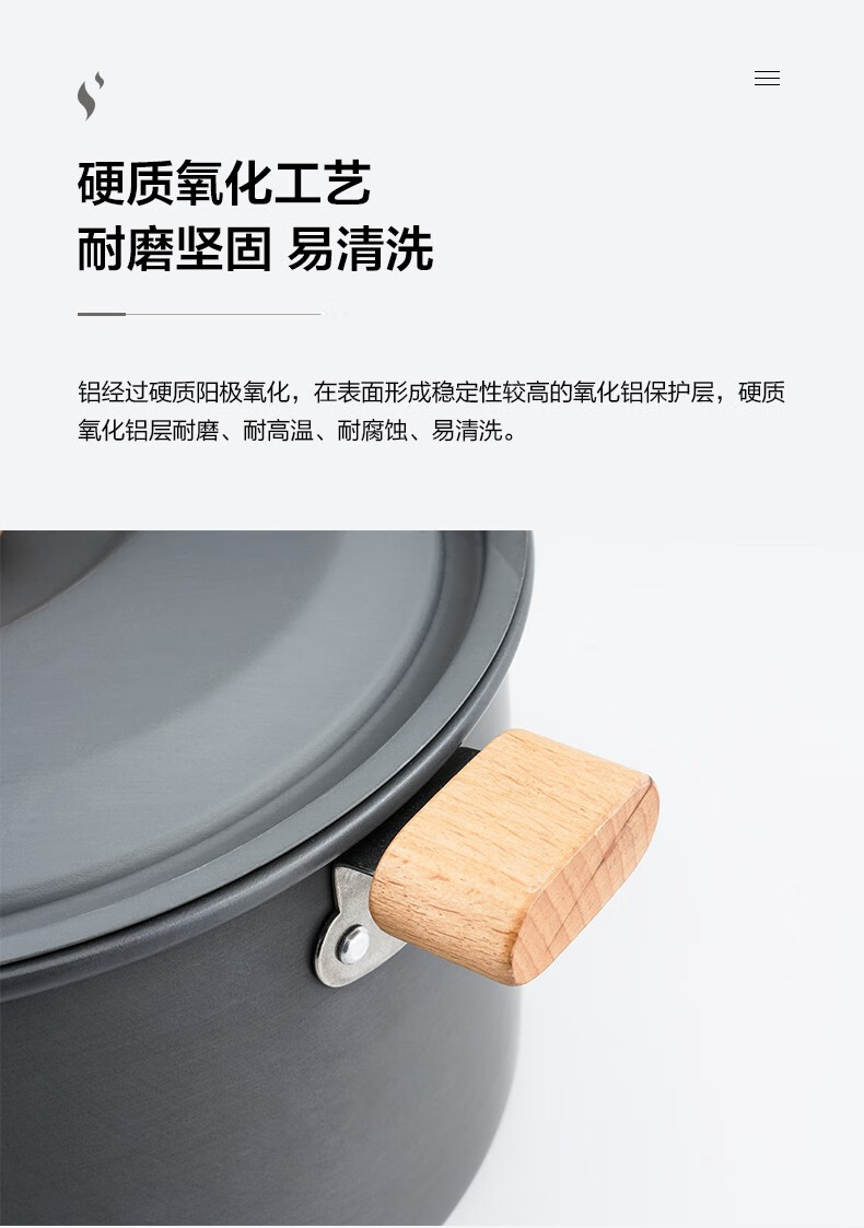 到货很快,包装无破损,锅也没有变形,铝合金氧化层整体质感还不错,轻便,烧水煮面后用百洁布一擦就干净了,锅盖提手处还贴有硅胶,防止揭开时候烫手,很贴心。