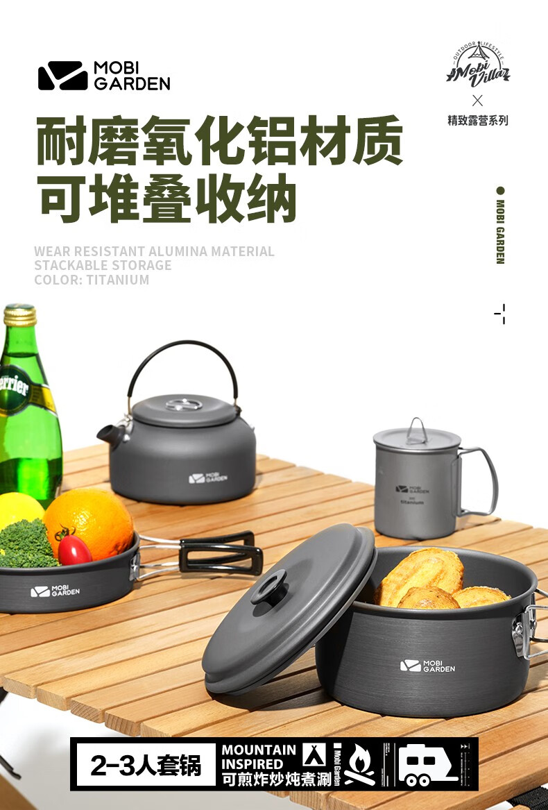 牧高笛钛锅户外露营烧烤野炊可折叠纯钛套锅蒸锅轻量便携野营套锅锅具 钛锅(0.75L+0.28L)