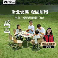 牧高笛(MOBIGARDEN)京享折叠桌椅套装 户外露营野餐烧烤一桌六椅 NX25665019 和风沙