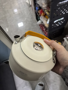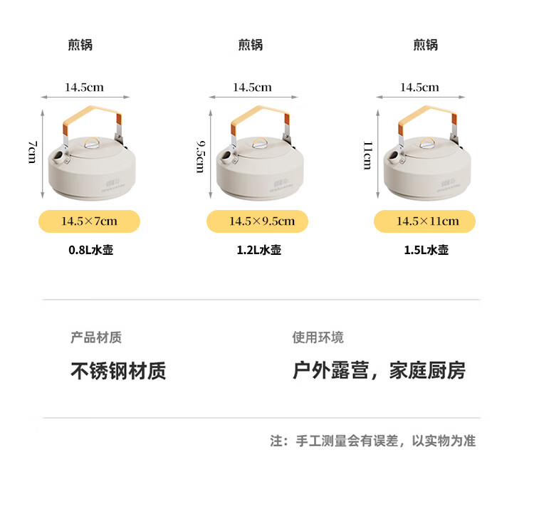 探险者(TAN XIAN ZHE)户外卡式炉锅具烧水壶煎锅煮锅可堆叠煎锅露营轻便携不锈钢锅具 1.2L水壶-奶油白【赠收纳网袋】