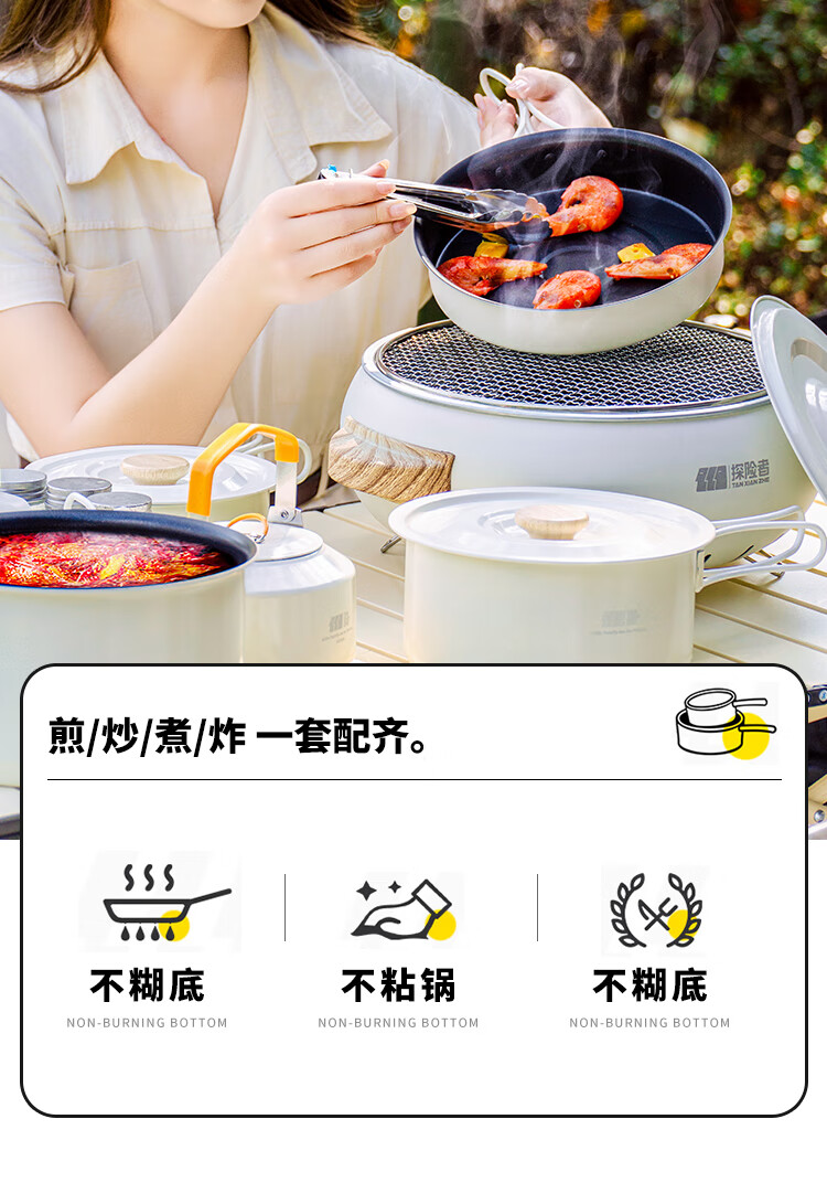 探险者的户外用炊具,质量还是很过关的,而且颜值也不错,主要是这一款不是普通使用的铝合金材质,适应了食品用不锈钢,用起来更放心。