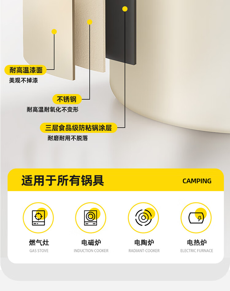 宝贝收到了,奶白色的锅太有质感了!质量很轻,收纳还合理,超级喜欢!