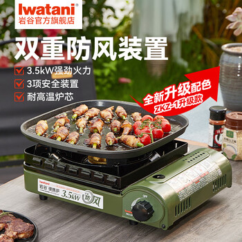岩谷(Iwatani)防风卡式炉便携式烧烤户外炉具烤盘套装火锅露营野餐卡磁丁烷燃气 岩谷 ZKZ-2F防风款