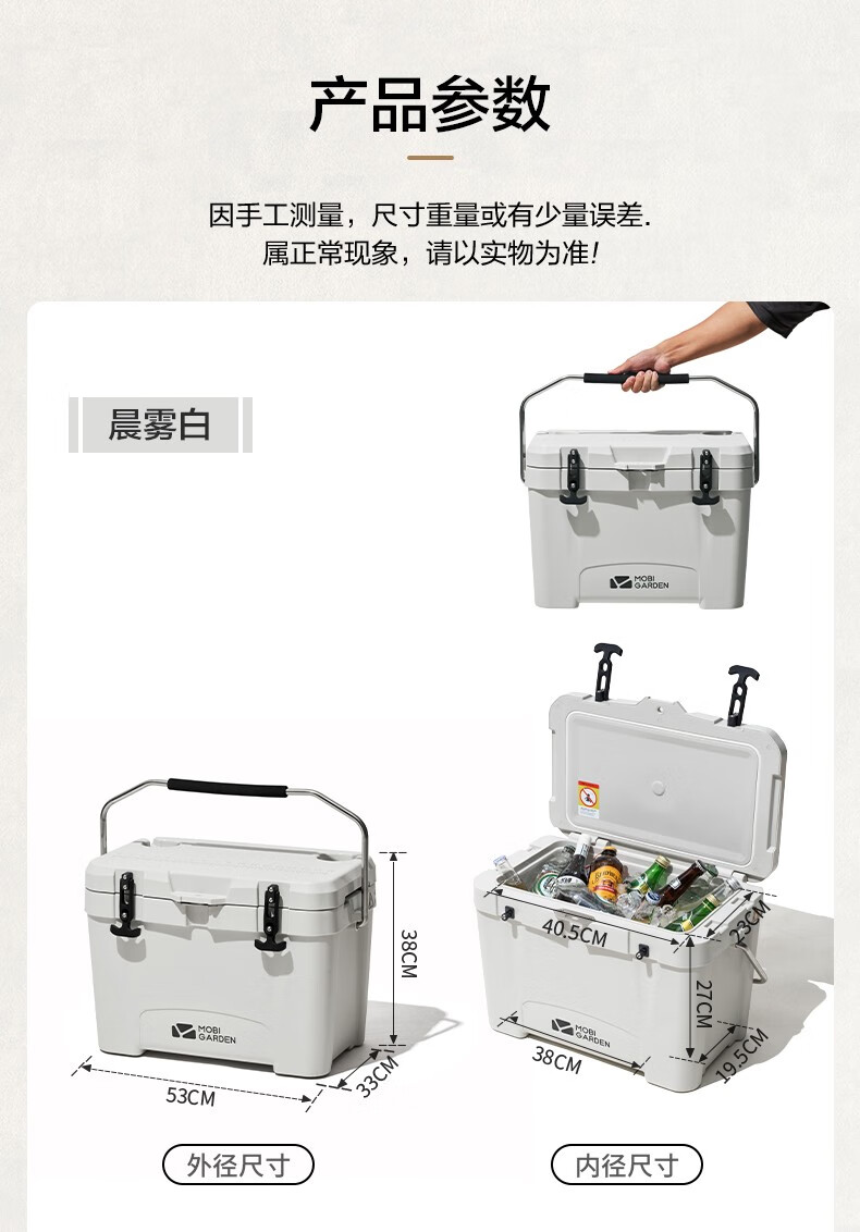 牧高笛(MOBIGARDEN) 保温箱 户外露营大容量食品饮料冷藏箱车载便携手提保温箱冰川 晨雾白