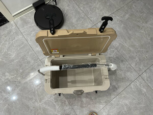 赶上618活动,价格非常合适。 保温箱整体很大,很厚实。 设计坚决而不简单,有量尺,有酒瓶起子。 放入两个冰袋和少量冰块,放入常温的水和可乐,保温后变得很凉,保温效果很好。 把手可卸下,方便平时存放。