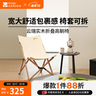 牧高笛(MOBIGARDEN)实木椅 户外露营野餐便携可拆卸实木折叠高躺椅云逸 象牙白