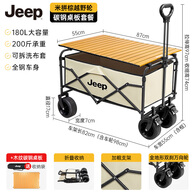 JEEP户外露营折叠车野餐车营地车露营装备便捷拖车推车购物 旅游买菜 180L越野轮米拼棕简易款+桌板