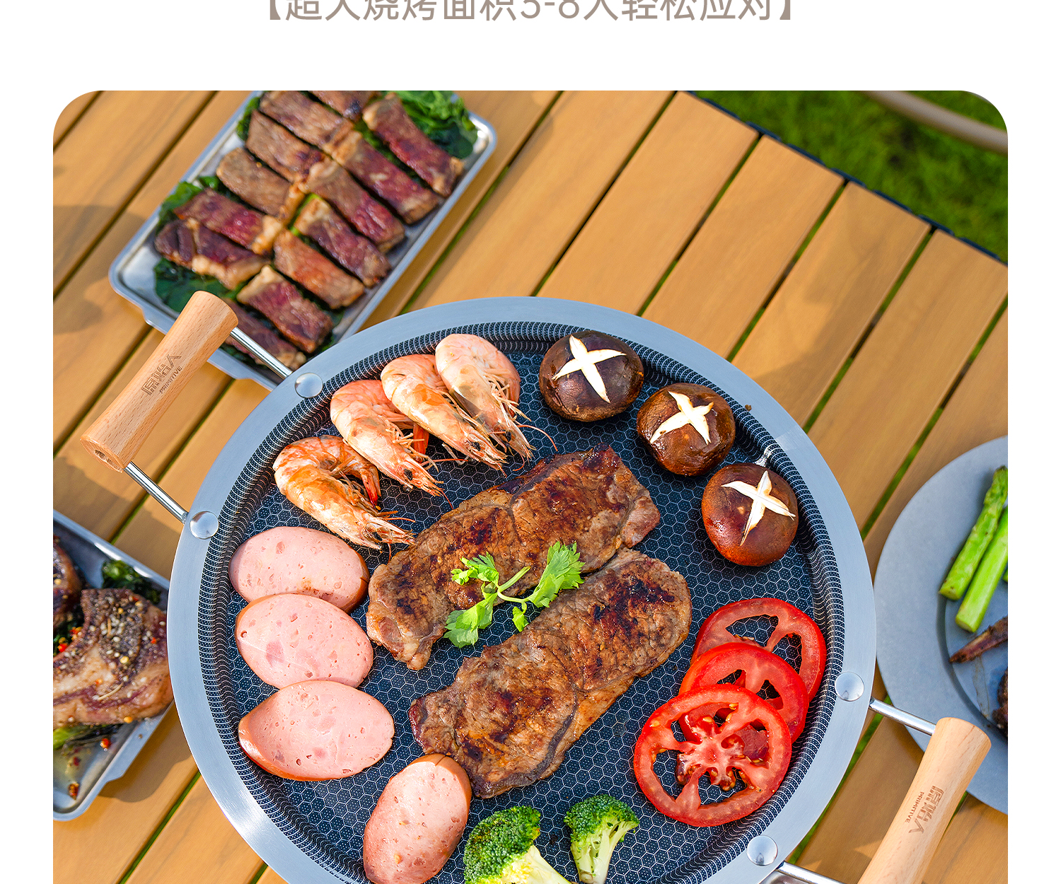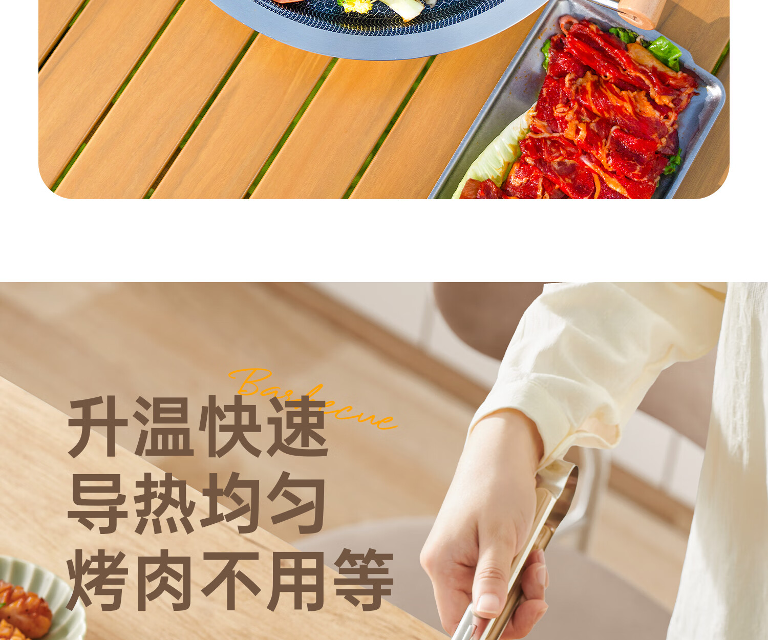 原始人露营烤盘便携户外电磁卡式炉铁板烧烤盘煎锅麦饭石韩式家用烤肉盘 【铝合金电火两用】33CM+手柄