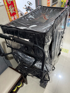打开很方便 轮胎很宽石头地拖着都很方便 自带的桌面加上给轮胎锁上也很稳 不错不错