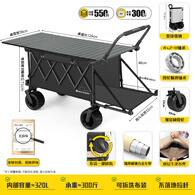 疆屿户外露营车便携折叠营地推车野营拉车摆摊快递拖车儿童可躺拉车 黑色聚拢MAX推拉一体+特大桌面