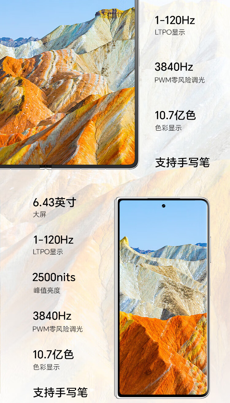 AI大模型,折叠屏,轻薄,LTPO屏幕,高频PWM调光,全焦段影像,潜望式长焦,无线充电,NFC,红外遥控,大底主摄
