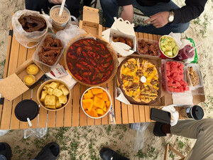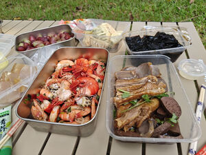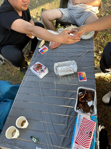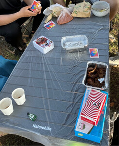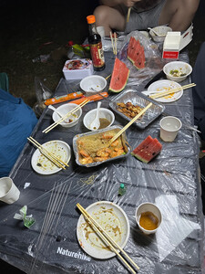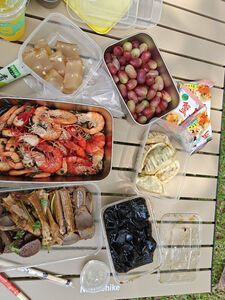 蛋卷桌很厚实,刚收到货马上带着朋友们一起来野餐啦!准备的食材都很丰盛,有海鲜、熟食、葡萄和各种零食。大家聚在一起享受美食真是太开心了!😃