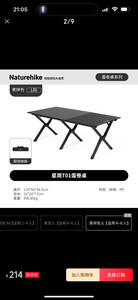 Naturehike挪客星简L01蛋卷桌超轻铝合金户外露营装备折叠便携桌子2-4-6-8人 黑色/L