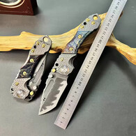 TLXT米勒兄弟T1重型折叠钛合金军工刀防身户外荒野求生露营登山多功能 灰色 60以上 9.8cm 12cm