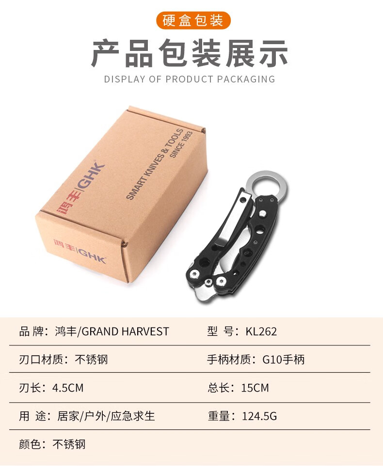 鸿丰(GRAND HARVEST)GHK露营爪子刀不锈钢户外刀防身弯刀野外求生高硬度鹰爪刀 银爪