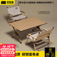 清系便携式露营桌子野餐可折叠克米特椅野营用品装备户外折叠桌蛋卷桌 特大号卡其色【黑色椅架】
