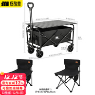 探险者露营车户外折叠推车营地车快递摆摊野餐车大容量野营拖车 【黑色升级款160L+桌板+折叠椅*2】