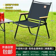 户外折叠椅克米特椅便携式桌椅休闲沙滩椅野餐露营椅子轻便钓鱼凳 特大号 黑色【榉木扶手】
