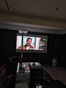 精挑细选了好久才下单买了这部极米RS 20高亮版,画质很好,操作简单,最重要的是投射比满足我家客厅大,但是墙壁不够大的投影需求,可以在3米多无损投出120寸,效果还是杠杠滴,自带的哈曼卡顿音响也很给力。刚好有国家补贴,性价比很高。手机拍出来明显偏红,肉眼看没这个问题。