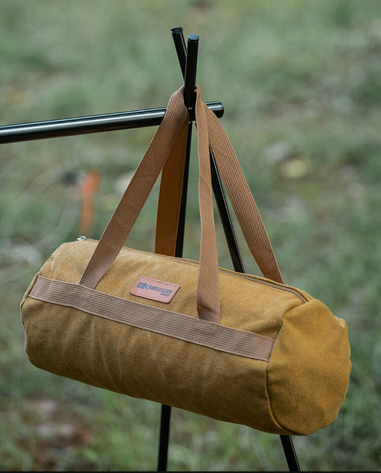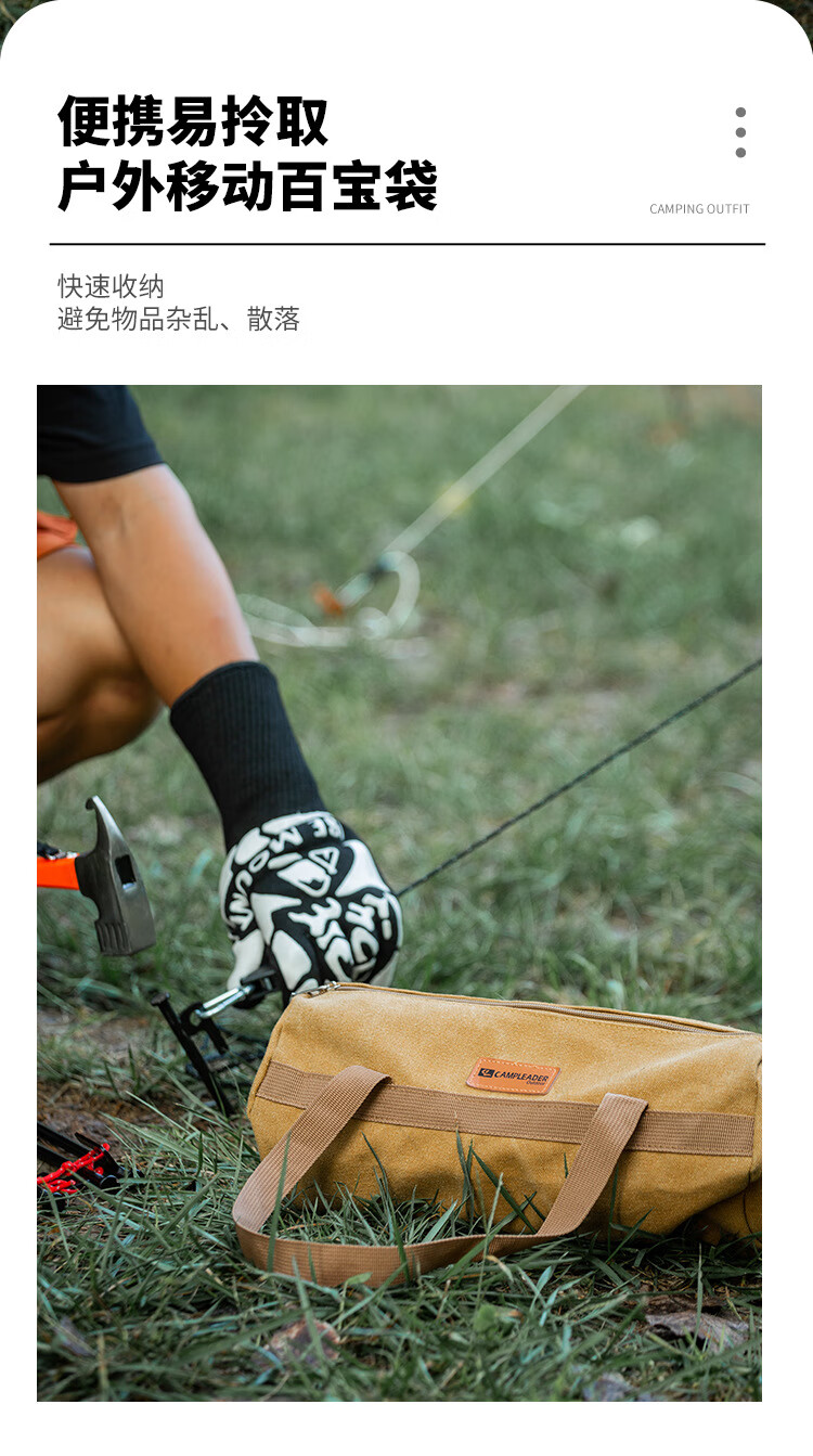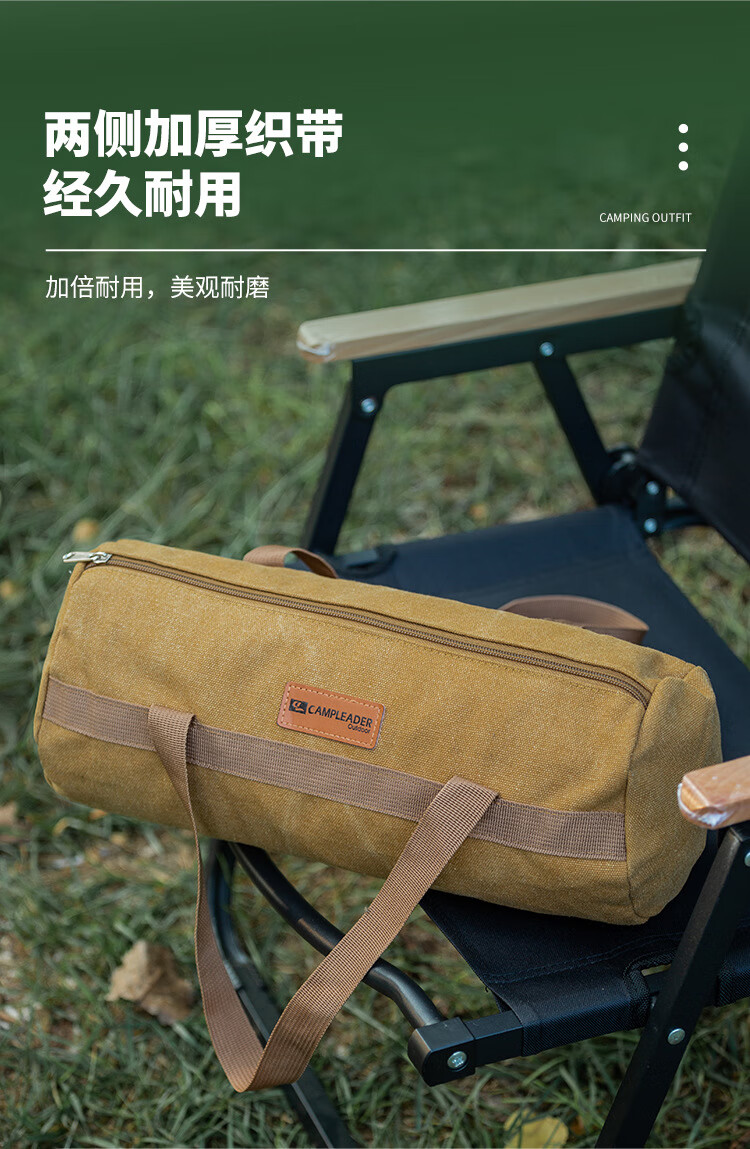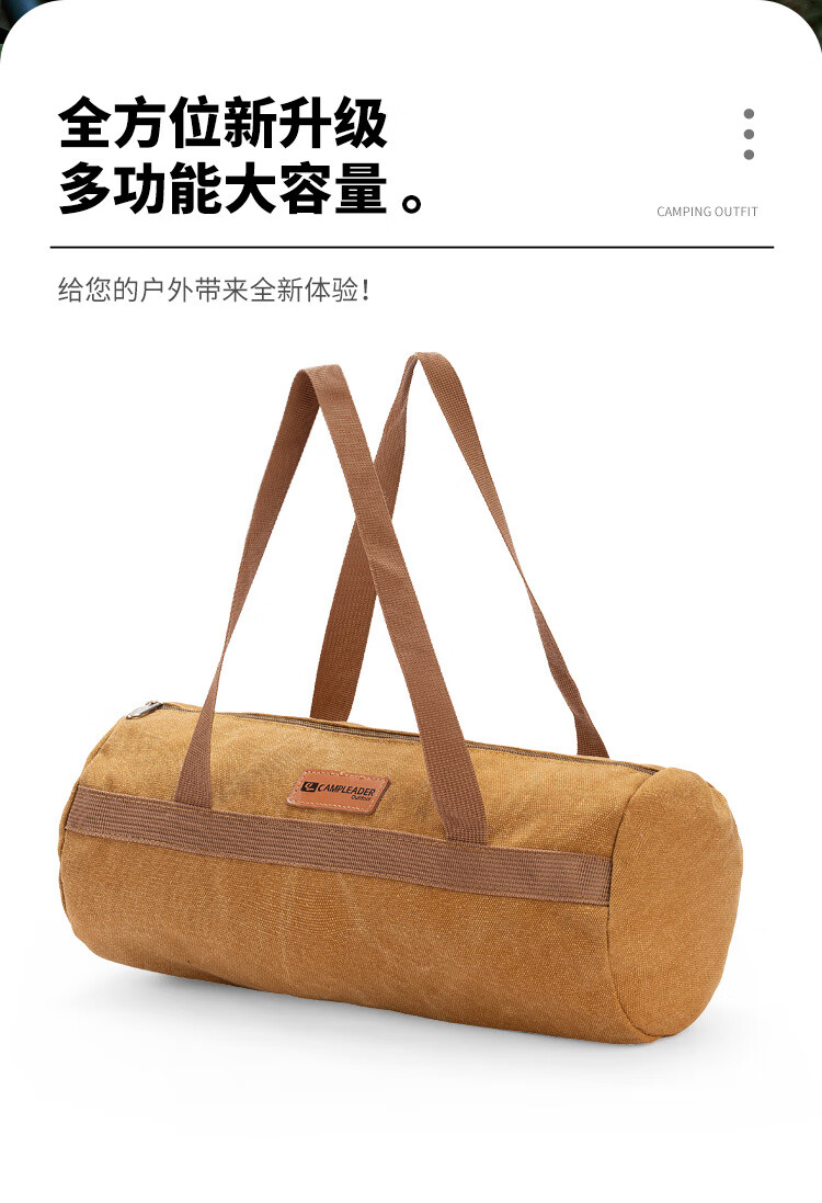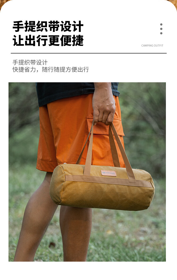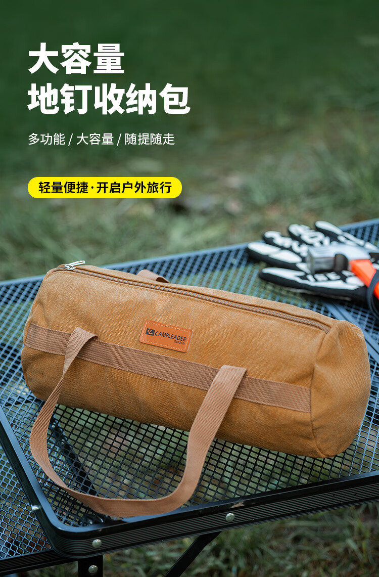 智宙野营手提地钉包圆筒包户外露营配件收纳包帐篷风绳地钉工具收纳袋 两用款大号卡其 【尺寸:42cm×13cm】