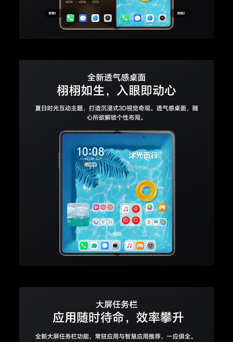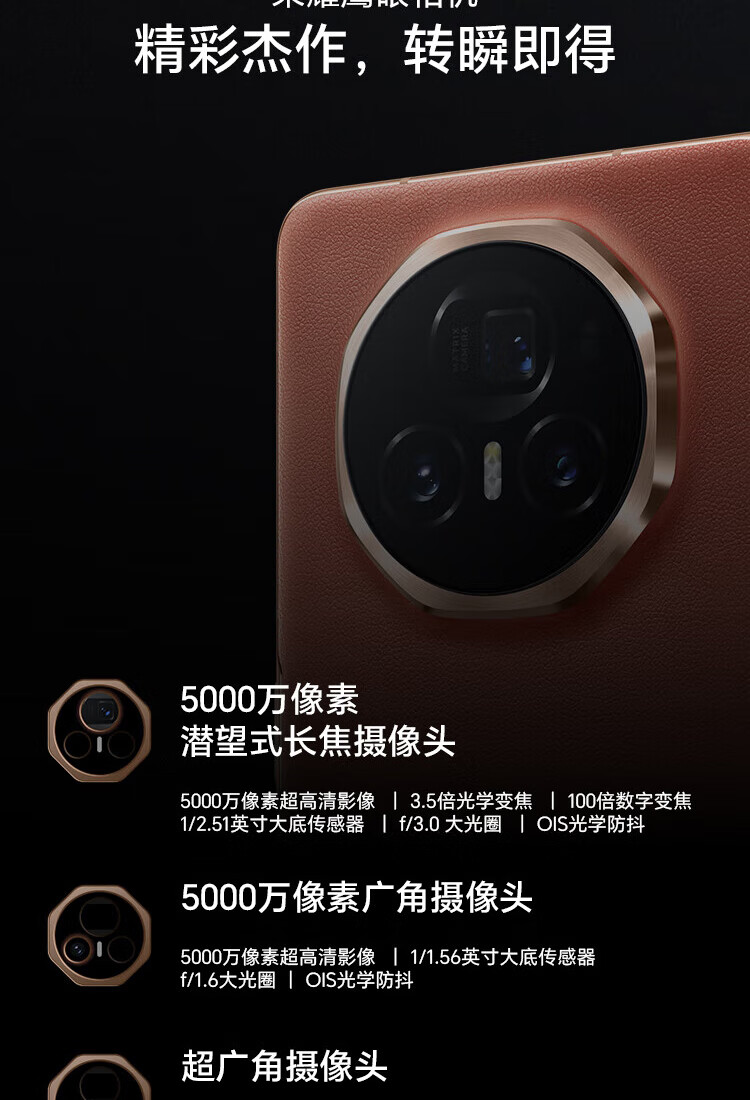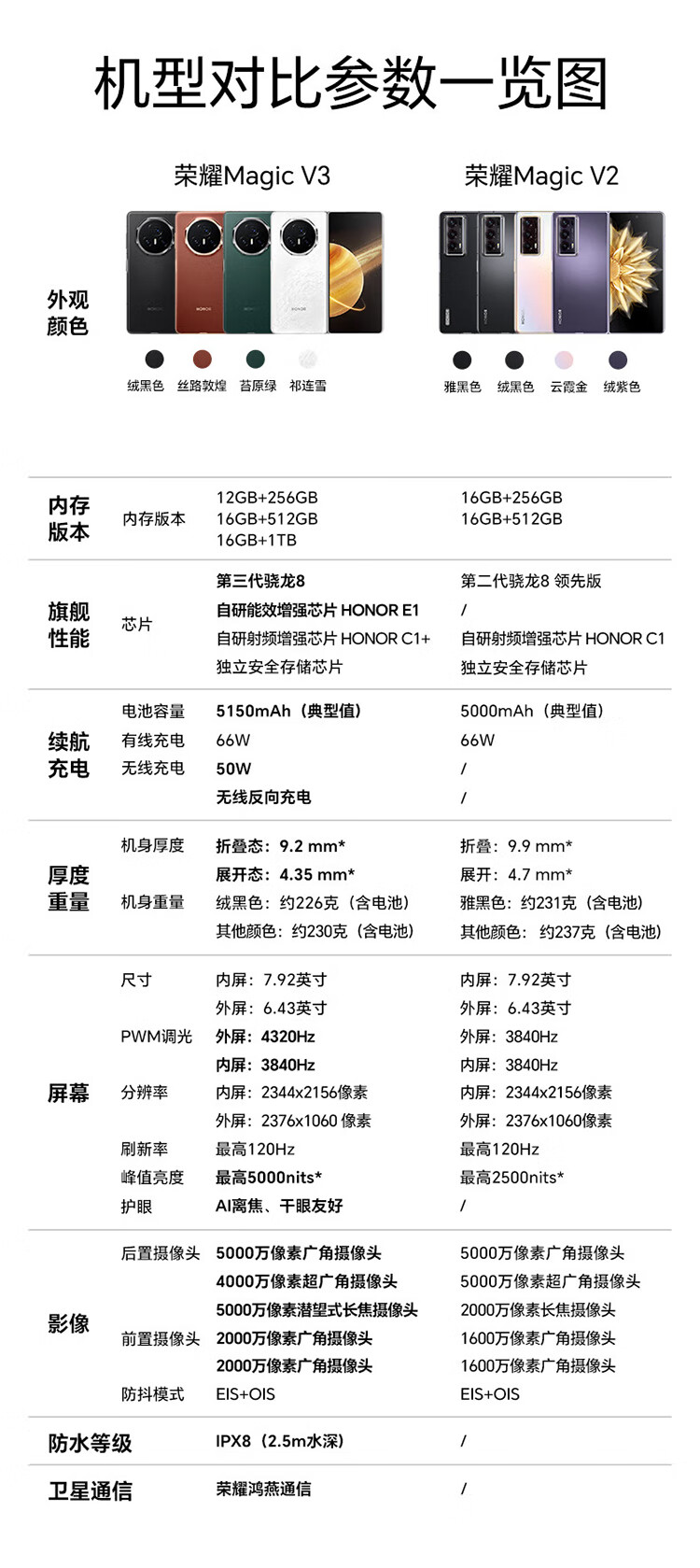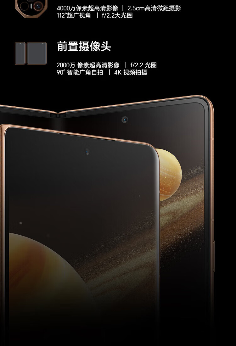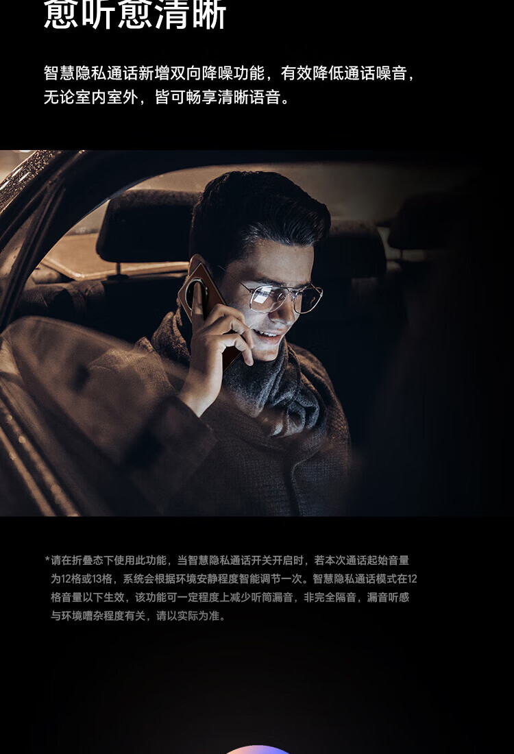 AI大模型,折叠屏,卫星通话,轻薄,LTPO屏幕,高频PWM调光,全焦段影像,潜望式长焦,无线充电,NFC,红外遥控,大底主摄