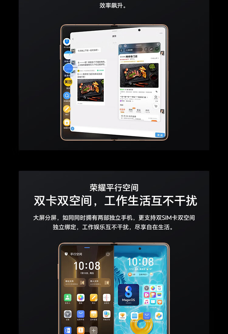 荣耀(HONOR)Magic V5【24期免息】新品折叠屏手机荣耀8.8mm轻薄长续航青海湖刀片电池5G手机AI新品2025上市 丝路敦煌 16G+1TB全网通 免息版本12期