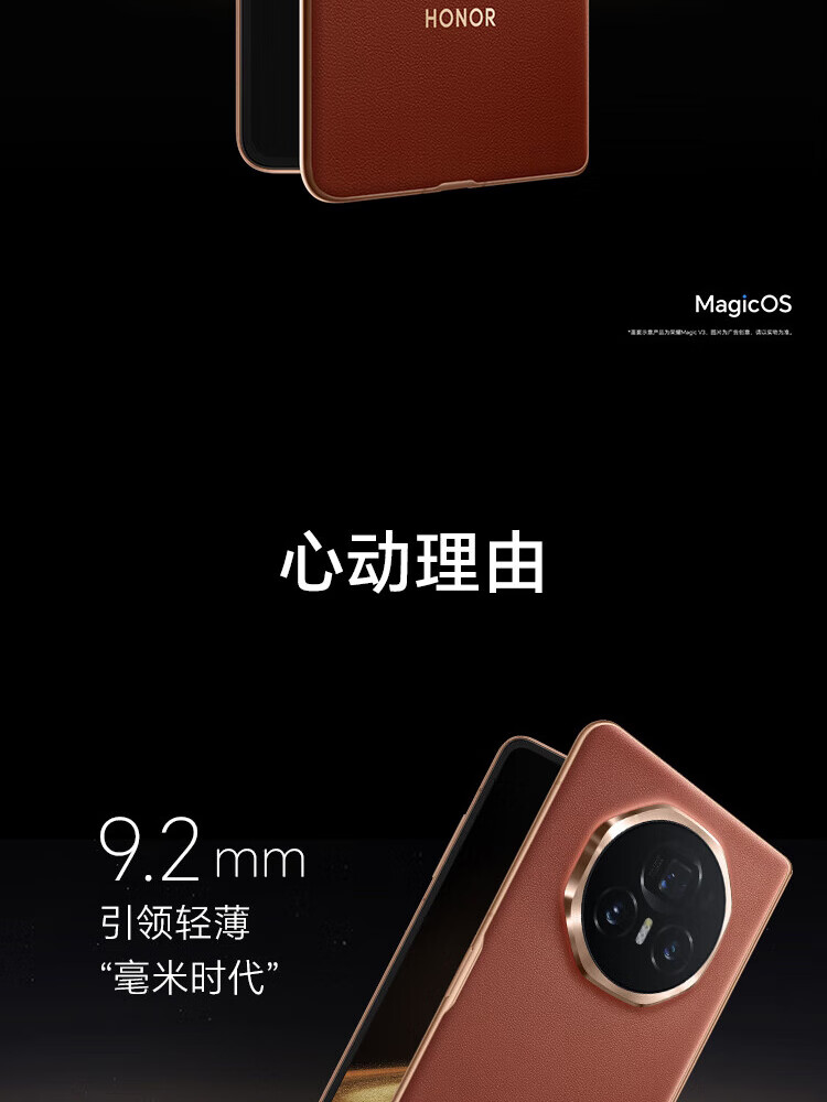 荣耀【正品分期免息】Magic V3 荣耀折叠屏 9.2mm超轻薄长续航 耐摔防水机身 第三代骁龙8 5GAI手机 苔原绿 16GB+1TB【12分期免息】